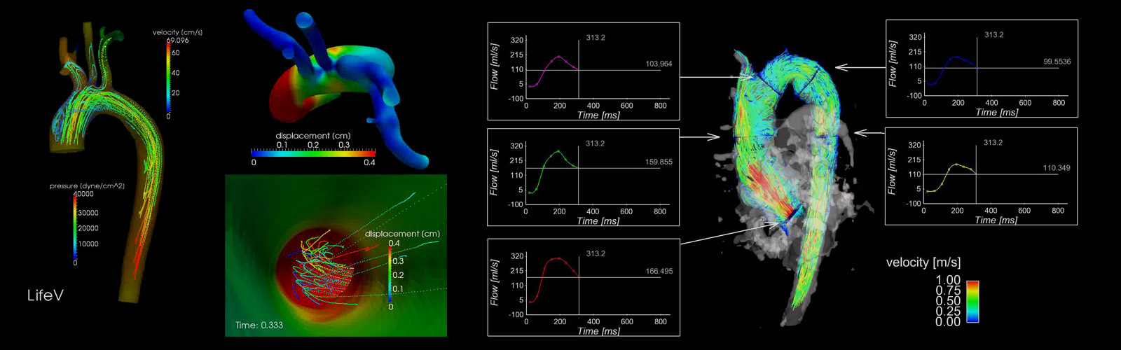 Numerical models have been recognized since decades to introduce a relevant added value to cardiovascular research, both for understanding physiopathology and for designing new devices and therapies. The predictive nature of mathematical models, solved by numerical tools on high performance computing architectures, opens significant and somehow revolutionary perspectives with a potential impact on clinical practice too. For instance, a surgical operation like the Left Ventricular Assisted Device (see the picture), consisting in an external graft added to the ascending aorta to replace the functionality of a malfunctioning valve, may be carried out in different ways (for the position of the anastomosis). Numerical tools may quantitatively assess the impact of the different options on the hemodynamics and eventually on the success of the surgery. This course intends to provide some fundamental concept of modeling the circulation, covering: the introduction of equations and initial/value problems relevant to the description of dynamics of interest; the methodological aspects for their numerical solution. Also, the course will cover lectures from an expert of medical image processing, a key step for the patient-specific modeling. Finally, lectures will be offered by biomedical engineers and clinicians who will provide the “end- user” perspective of numerical modeling for cardiovascular diseases, including new entrepreneurial opportunities coming from cloud computing and computer aided clinical trials.