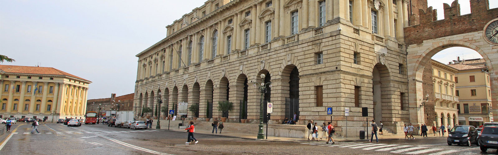 At the railway station, buses can be taken to the city center, stopping at Piazza Brà, the central square in which the Palazzo della Gran Guardia is located.