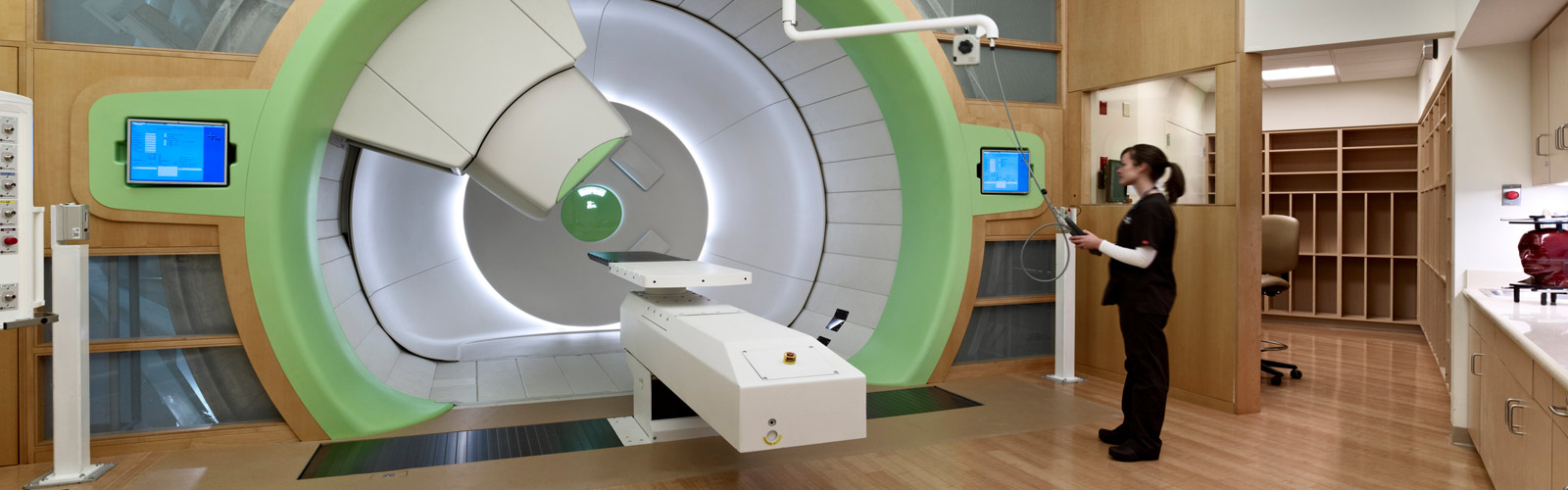 To proceed the treatment, a plan is draw on a 3D image (a CT scan) of the patient. The Gross Tumour Volum is segmented and the Organs At Risk (OAR) are also identified to be protected during the treatment. The plan allows to maximize the dosis on the tumour and minimize the dosis on the OAR. The patient is treated in the room on the basis of the 3D scan taken before the treatment.